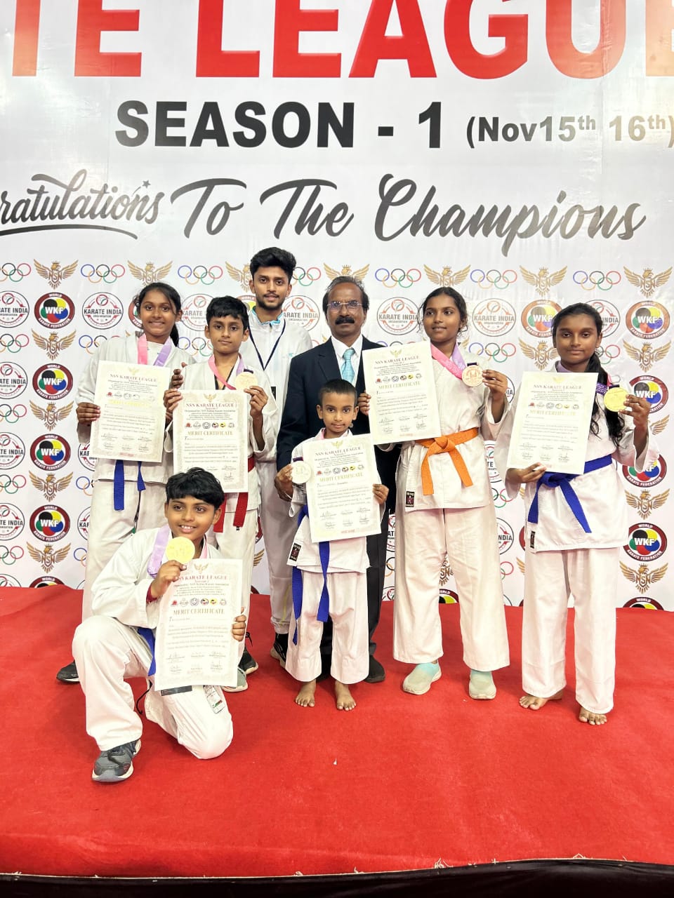 Students of Svastha Sports Academy, trained at the Tulasi Nagar Community Hall, are proud to announce their outstanding performance at the NSN National Karate League Season-1 (2025) held at the Gachibowli Indoor Stadium on November 15–16.